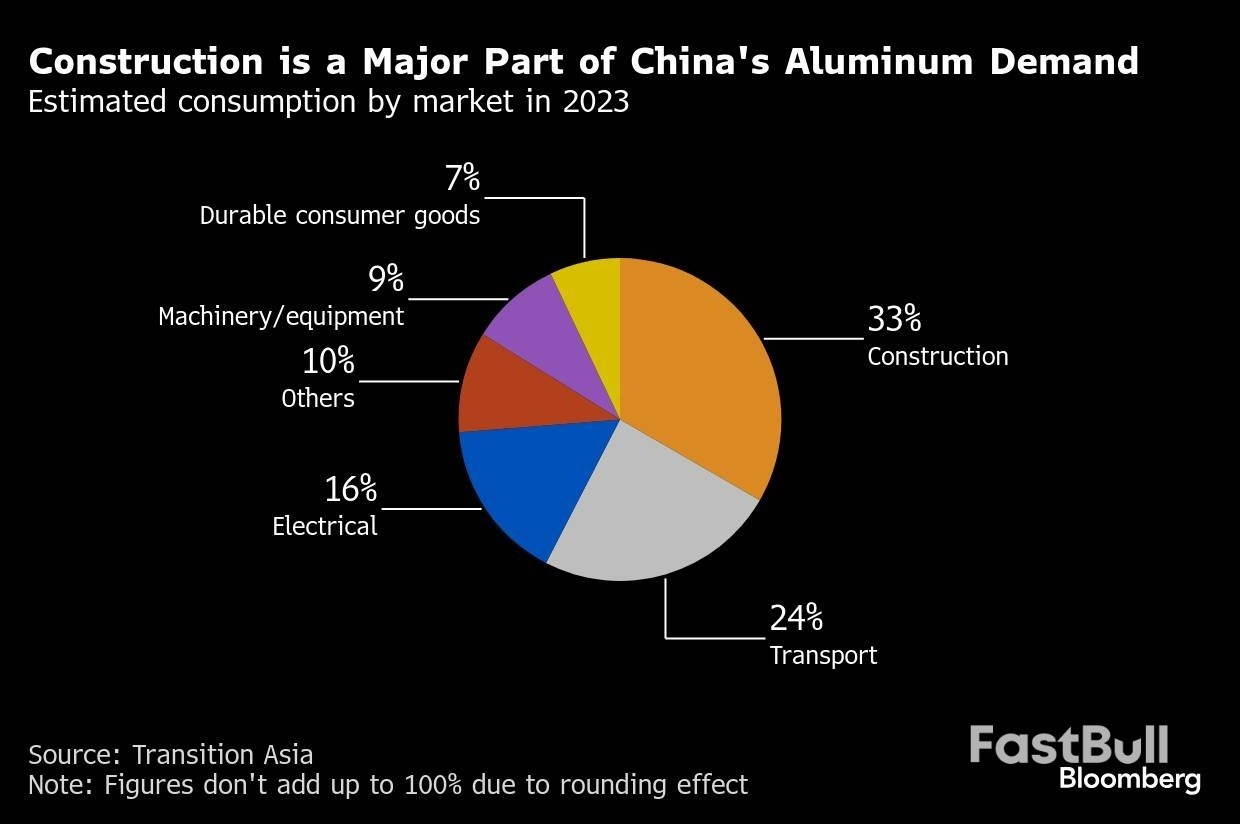 Sektor ini sebelumnya sangat bergantung pada real estat dan infrastruktur, sehingga penurunan aktivitas konstruksi sejak pandemi sangat merugikan. Menurut peneliti Shanghai Metals Market (SMM), tingkat operasional perusahaan pengolah aluminium terbaik berada di kisaran 60–70%, sedangkan perusahaan yang lebih lemah hanya 40–50%, keduanya berada di bawah level minimum yang sehat yaitu 80%.